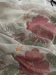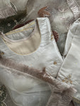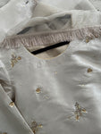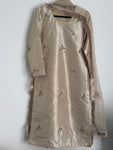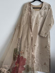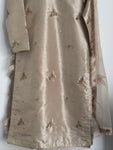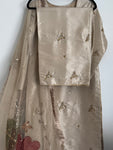 A beautiful light golden ensamble crafted from luxurious 60g raw silk, paired with a soft, handpainted organza duppata to complete the look. This timeless masterpiece consist of a mixture of zarodozi, sequins, cut-dana and many other components.