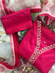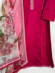 Solid lawn kameez and trouser paired with printed organza duppata (3 piece). Style details include: