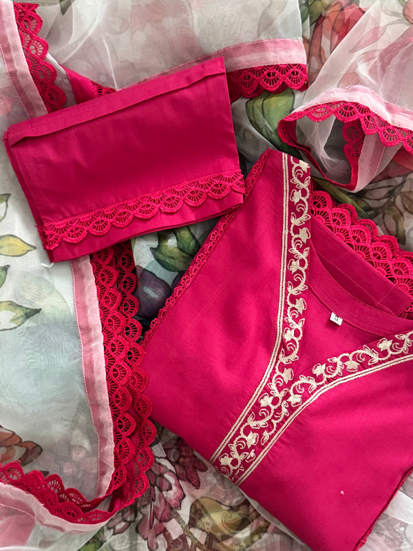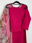 ( Delivered within 2 days all over uk and worldwide delivery within 5 to 7 days) Solid lawn kameez and trouser paired with printed organza duppata (3 piece). Style details...