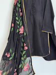 ( Delivered within 2 days all over uk and worldwide delivery within 5to7 days) A pretty pure korean raw silk ensemble all in one tone with a gorgeous handpainted duppata to...