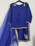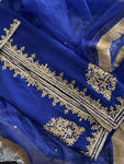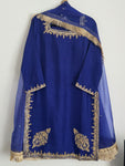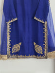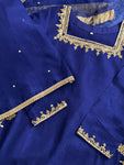 Elevate your formal wardrobe with this exquisite piece of traditional Pakistani wear, meticulously crafted from premium Korean raw silk. Known for its subtle sheen and luxurious drape, the fabric provides...