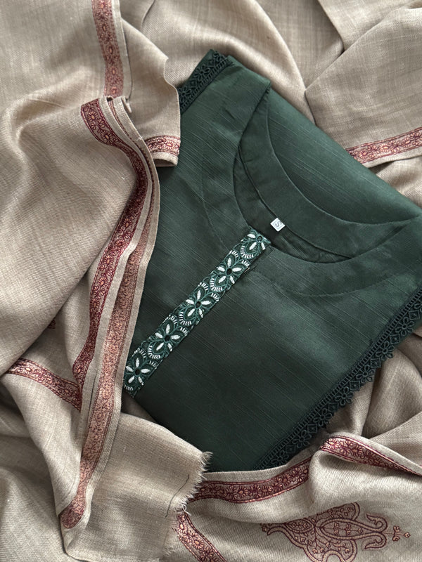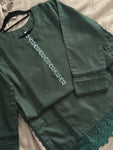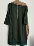 Please note: shawl is sold separately. This two-piece khaddar set, featuring delicate lace detailing, makes the perfect winter outfit. It’s paired with stylish palazzo trousers. SIZE GUIDE Small - length...