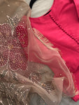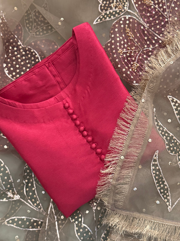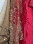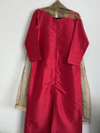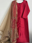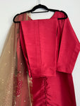 ( Delivered within 2 days all over uk and worldwide delivery within 5to7 days) A beautiful red ensamble crafted from luxurious korean raw silk, paired with a soft handpainted organza duppata...
