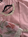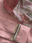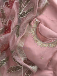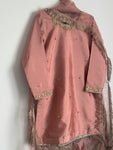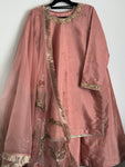 ( Delivered within 2 days all over uk and worldwide delivery within 5to7 days) A beautiful blush pink ensamble crafted from luxurious 60g raw silk, paired with a soft organza duppata to...