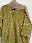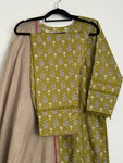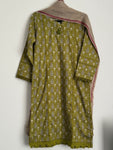 Please note: shawl is sold separately. This two-piece khaddar set, featuring delicate lace detailing, makes the perfect winter outfit. It’s paired with trousers. SIZE GUIDE Small - length 43.5Chest 38...