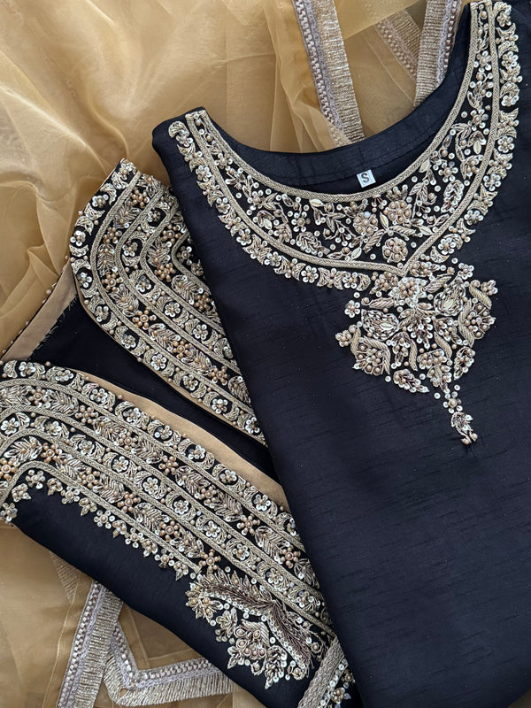 ( Delivered within 2 days all over uk and worldwide delivery within 5to7 days) A beautiful black ensamble crafted from luxurious korean raw silk. This timeless masterpiece consist of a mixture of...
